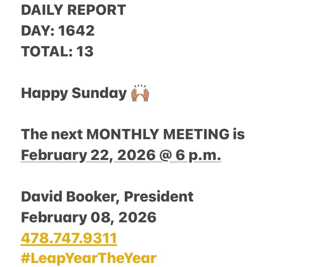 The next Regular meeting is the fourth, Sunday February 22, 2026 from 6P.M. You are invited to attend. Terms and Conditions apply.