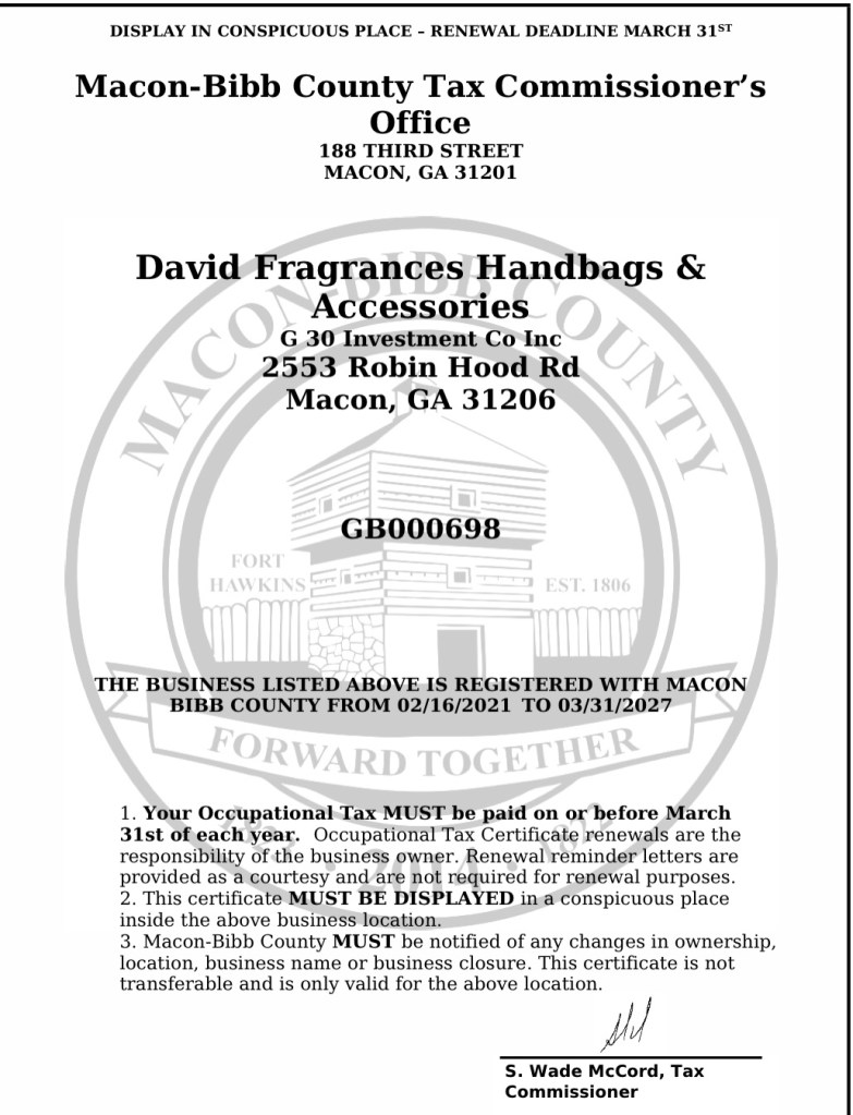 DAVID: FRAGRANCES, annual membership $300 dollars; we retail men & women authentic popular name brand fragrances for the same competitive prices free shipping on most orders, and with frequent discounts some fragrances are in stock. Google perfume.com to see prices & fragrances, and Give us a sniff! Text: 478.747.9311 to place an order.